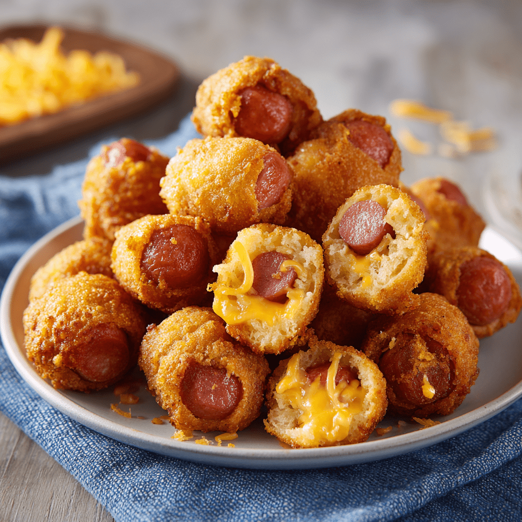 Cheesy Corn Dog Bites are a guaranteed hit, transforming a simple concept into an irresistibly fun and flavorful snack. They’re the perfect recipe to bring joy, nostalgia, and deliciousness to any gathering.