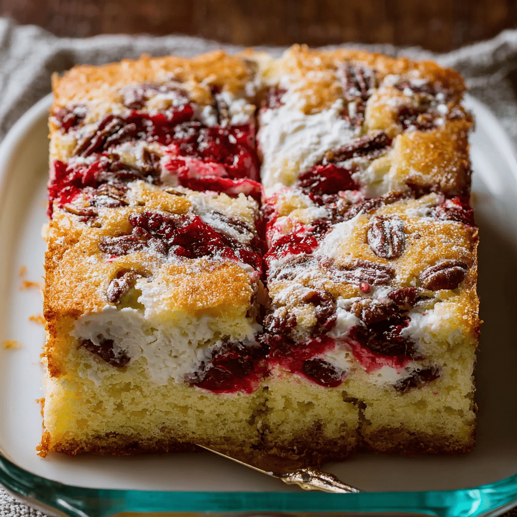 Christmas Chaos Cake is a wonderfully whimsical and delightfully decadent dessert that embodies the festive spirit of the season in one spectacular, marbled masterpiece. This recipe is a joyful rebellion against precision, celebrating the beautiful “chaos” of swirling rich, tangy cream cheese, sweet-tart cranberry sauce, and buttery pecans into a simple, tender cake batter. The journey begins with a layer of toasted pecans that forms a nutty, crunchy crust on the bottom of the cake, providing a surprising and delightful textural contrast. A classic cake mix batter serves as the effortless and reliable canvas, ready to cradle the bold flavors swirled within. The true magic happens with the addition of generous dollops of velvety cream cheese filling and vibrant whole-berry cranberry sauce, which are then artfully swirled together with the batter to create a stunning, festive pattern of red and white. Each slice reveals a unique landscape of creamy, fruity, and nutty layers, making every bite a delightful surprise.