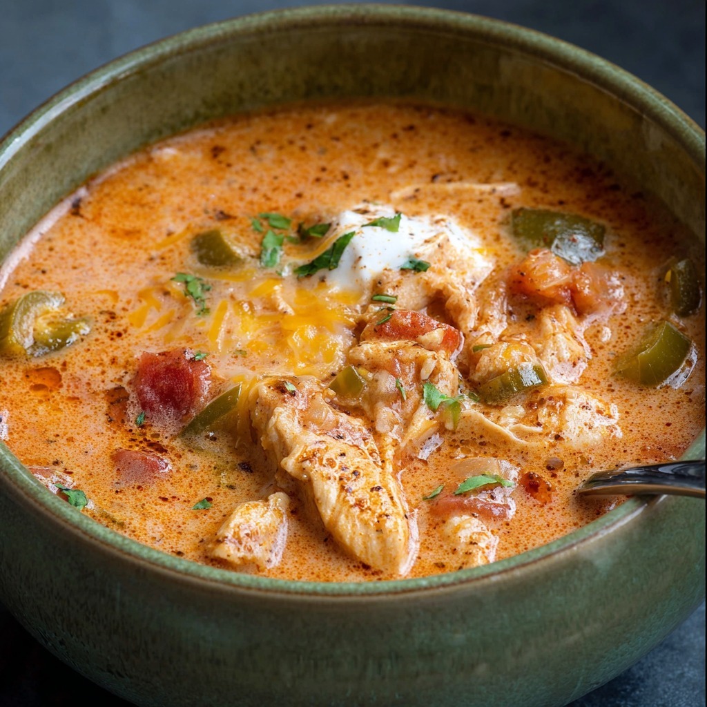 Creamy Chipotle Chicken Soup is a bold, vibrant fusion of comfort and spice, a dish that masterfully layers smoky, earthy chipotle heat with the rich, soothing creaminess of cheese and heavy cream. This recipe is a robust, one-pot wonder that begins with a colorful, aromatic base of sautéed bell peppers, onions, and jalapeño, building a foundational sweetness and subtle heat. Into this base, whole chicken breasts are gently poached in a deeply seasoned broth of Rotel tomatoes, spicy tomato sauce, and the secret weapon—adobo sauce from canned chipotles. This smoky, complex sauce permeates every element of the soup, creating a rich, flavorful bath that cooks the chicken to succulent tenderness while infusing the broth with its distinctive character. The result is a soup with a remarkable depth that feels both hearty and sophisticated.