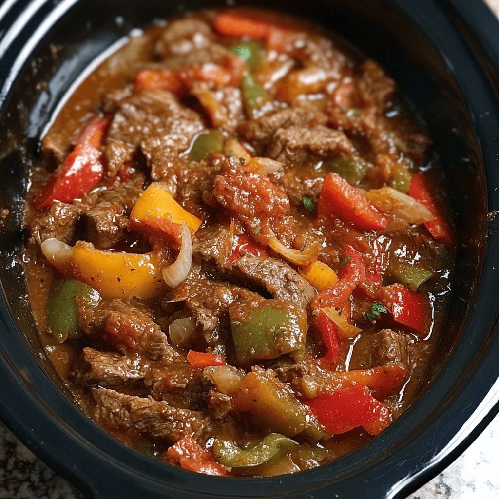 Crock Pot Pepper Steak is a quintessential slow cooker meal that transforms simple, affordable ingredients into a tender, flavorful, and comforting dish with minimal effort. This recipe takes lean beef stew meat and slow-cooks it for hours in a savory broth enriched with Worcestershire sauce, garlic, and stewed tomatoes, resulting in meat that is so tender it practically melts in your mouth. The addition of colorful bell pepper strips introduces a slight crunch and a sweet, fresh contrast to the rich, gravy-like sauce. Unlike traditional stir-fry versions that require constant attention, this set-it-and-forget-it method allows the flavors to meld together beautifully throughout the day, filling your home with an inviting aroma. It’s the perfect solution for a busy weeknight, delivering a hearty, satisfying meal that feels both familiar and special.