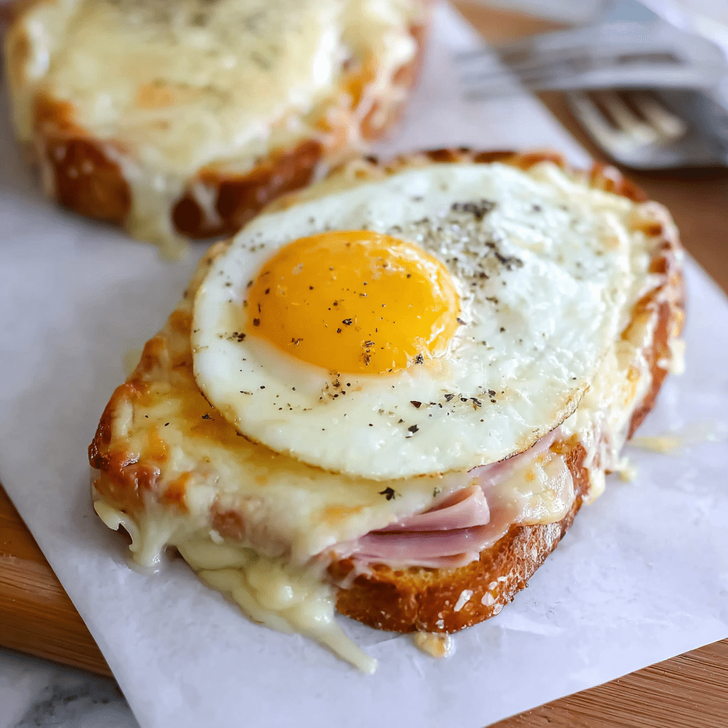 The Croque Madame represents the pinnacle of French café cuisine—an elegant, indulgent sandwich that transforms simple ingredients into a sophisticated meal. This recipe elevates the classic ham and cheese sandwich by enveloping it in a luxurious, homemade Mornay sauce (a béchamel enriched with Gruyère and Parmesan) and crowning it with a perfectly cooked sunny-side-up egg. The magic begins with a carefully crafted cheese sauce that’s both silky and robust, providing the rich blanket that defines this dish. When broiled, the sauce forms a gorgeous, bubbly golden crust that gives way to layers of savory ham, tangy Dijon mustard, and soft bread, all complemented by the final masterpiece: an egg with a runny yolk that creates its own natural sauce when pierced. This isn’t merely a sandwich; it’s a culinary experience that balances textures and flavors with French precision.