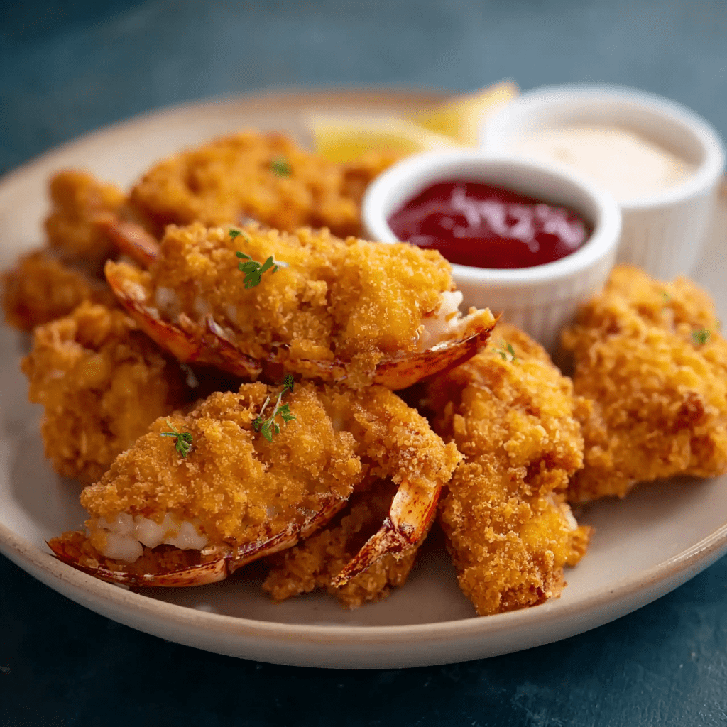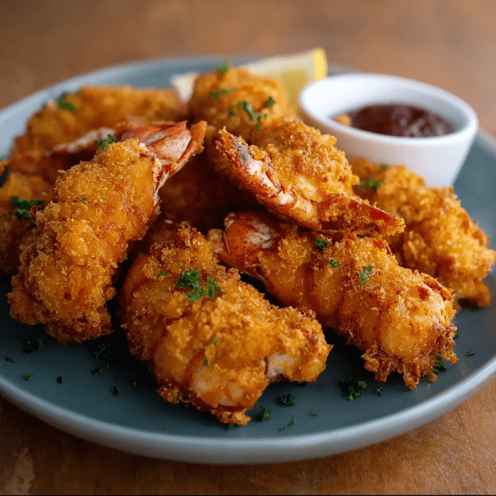 Deep Fried Lobster Tails are the ultimate indulgence—a luxurious, golden-crusted seafood delicacy that transforms elegant lobster into a crispy, tender, utterly irresistible comfort food. This recipe is a celebration of contrast: the sweet, delicate, succulent lobster meat is enveloped in a shatteringly crisp, well-seasoned crust that gives way to buttery, perfectly cooked seafood with every bite. The magic begins with preparing the lobster tails by “butterflying” them—cutting through the top shell and pulling the meat up to rest on top, creating a beautiful presentation and ensuring even cooking. A quick soak in a tangy mixture of buttermilk and hot sauce tenderizes the meat and adds a subtle kick, while the seasoned flour coating, enhanced with a few tablespoons of the buttermilk mixture to create small clumps, guarantees an exceptionally craggy, crispy crust.