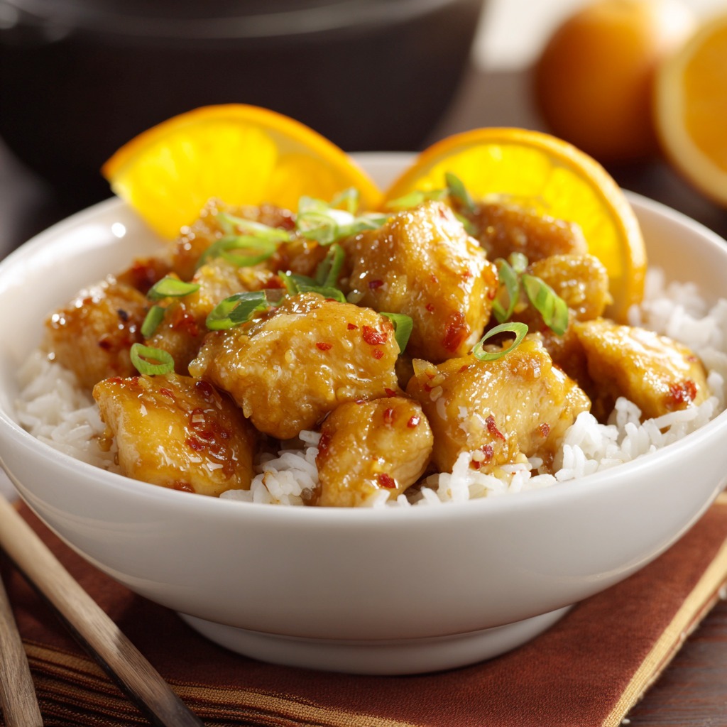 Transfer the orange chicken to a serving platter. Immediately garnish with sliced green onions, orange zest, and a pinch of red pepper flakes. Season with a final pinch of salt and pepper if desired. Serve hot over steamed rice with orange slices on the side.