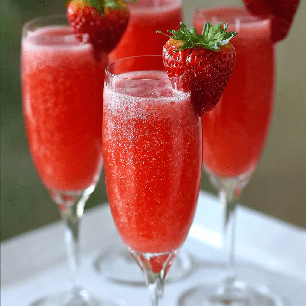 Frosty Strawberry Mimosas are a vibrant and elegant twist on the classic brunch cocktail, transforming it into a slushy, refreshing, and visually stunning drink that is perfect for celebrations, warm-weather gatherings, or simply elevating a leisurely weekend morning. This recipe masterfully blends the convenience of frozen strawberries with the sophisticated effervescence of champagne, creating a drink that is both effortlessly chic and delightfully easy to prepare. The magic begins in the blender, where the frozen strawberries are pureed with a touch of sugar and a base of champagne into a thick, vibrant, and frosty slush. This strawberry base acts as a flavorful foundation that, when topped with more chilled bubbly, creates a beautiful ombre effect in the glass and ensures the drink stays cold without being diluted by traditional ice cubes. The result is a perfectly balanced cocktail that is neither too sweet nor too tart, with the natural berry flavor shining through alongside the crisp, dry notes of the champagne.