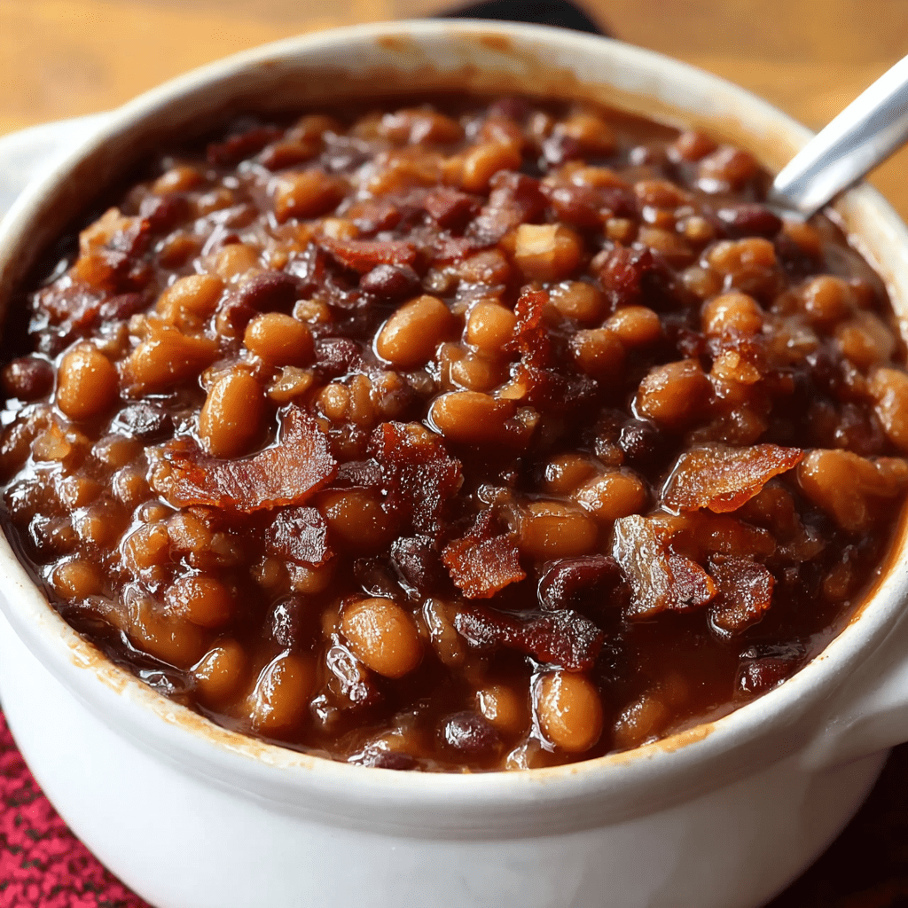 Georgia’s Loaded Baked Beans are the ultimate potluck and barbecue side dish, a hearty, smoky, and irresistibly flavorful upgrade to the classic canned version. This recipe transforms humble beans into a thick, savory, and slightly sweet casserole that is packed with texture and depth. It starts by building a foundation of crispy, rendered bacon and sautéed onions and garlic, creating a rich flavor base that infuses every bite. A trio of beans—pork and beans, kidney beans, and black beans—provides a wonderful variety of sizes and textures, while a homemade sauce blending barbecue sauce, ketchup, brown sugar, and spices ties everything together with a perfect balance of tangy, sweet, and smoky notes. Baked until bubbly and caramelized on top, these beans are a satisfying side dish that often steals the show.