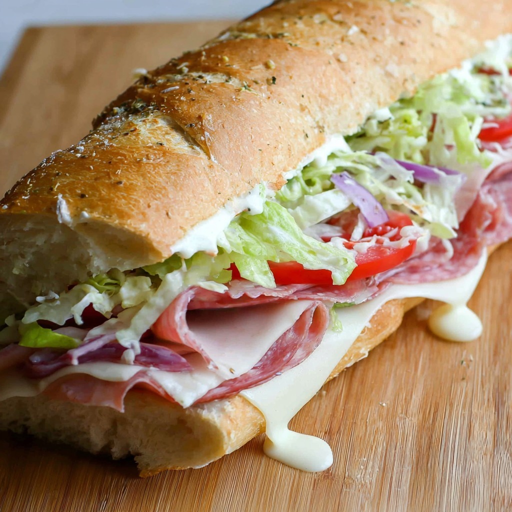The brilliance of this sandwich lies in its incredible balance and the way each element complements the others. The creamy, tangy iceberg salad cuts through the richness of the meats and cheese, while the pepperoncini adds a briny, slightly spicy kick. The crusty Italian loaf provides the perfect sturdy vessel, holding everything together without becoming soggy. This is a sandwich that demands to be eaten with both hands, preferably leaning over a plate to catch any drips. It’s the ultimate grinder—a hearty, satisfying, and utterly delicious meal that’s perfect for a picnic, a game-day feast, or any time you’re craving something truly spectacular.