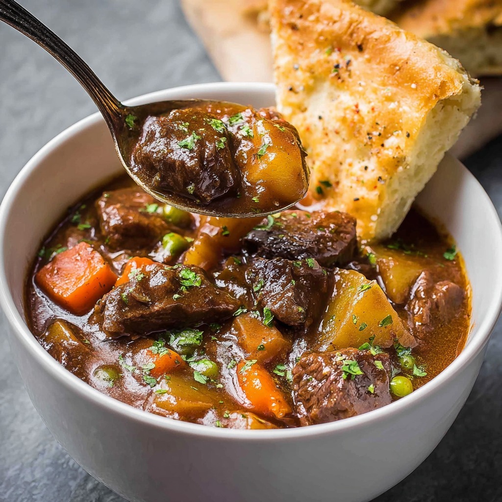 Guinness Beef Stew is a magnificent, soul-warming ode to rustic Irish cooking, a dish where patience and humble ingredients coalesce into a deeply flavorful, hearty masterpiece. This recipe transcends ordinary stew by building layers of umami-rich foundation, starting with the gentle rendering of bacon fat, which is then used to sear chunks of beef chuck into a crusty, caramelized perfection. The true genius lies in the deglazing step, where a full bottle of Guinness Stout is poured into the pot, its malty sweetness and roasted bitterness dissolving the precious browned bits (fond) to create a complex, robust base. As the stew simmers for hours, the beer mellows and melds with rich beef broth, sweet carrots, earthy potatoes, and aromatic thyme, transforming into a rich, glossy gravy that clings lovingly to every tender morsel of beef and vegetable.