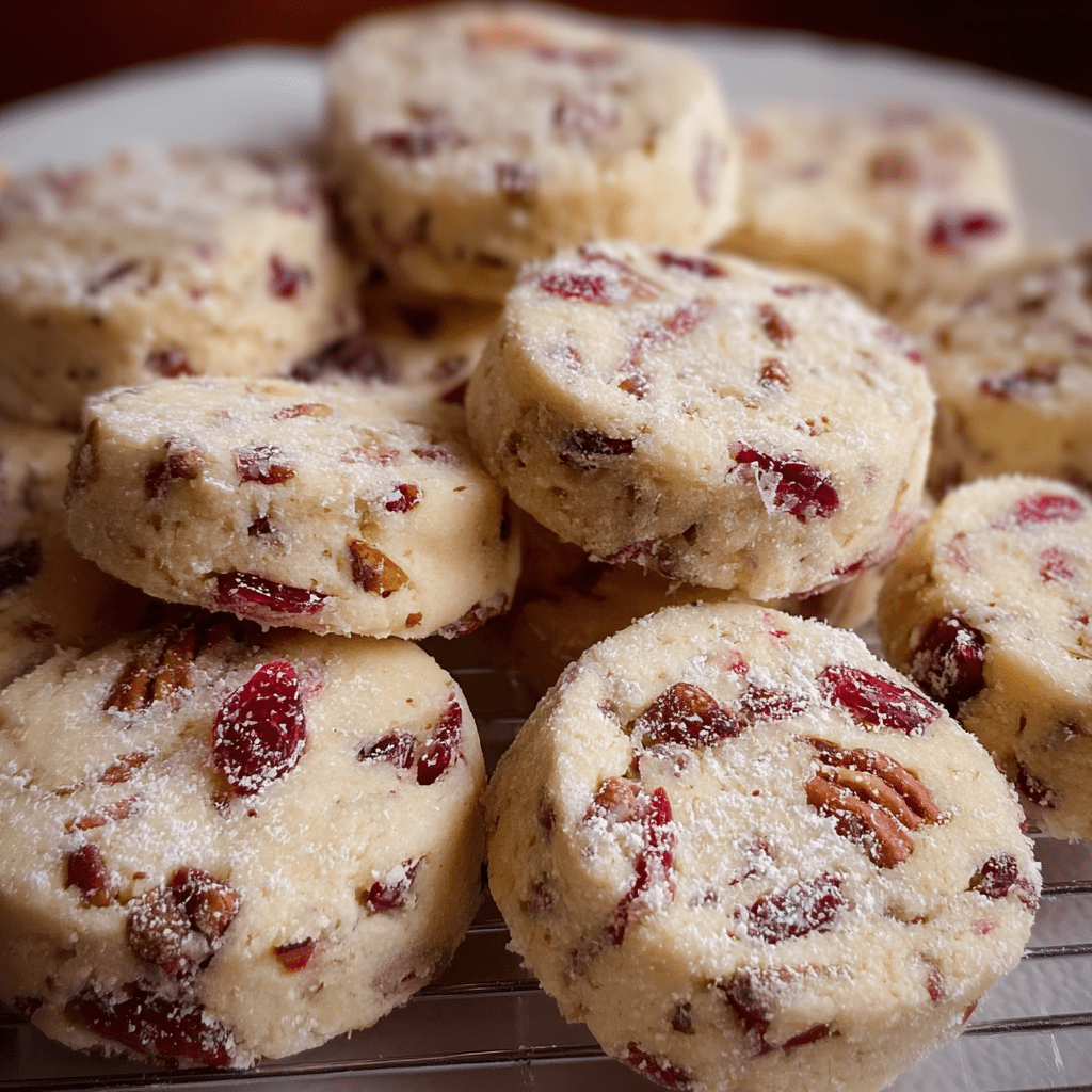 What makes these cookies so special is their perfect balance of textures and flavors. The simplicity of the shortbread base allows the cherries and nuts to be the stars, while the powdered sugar gives the cookies a finer, more delicate crumb than granulated sugar would. Forming the dough into logs and chilling ensures clean, even slices and helps the cookies hold their shape during baking. The cherries not only add wonderful flavor and color but also keep the cookies moist for days. This recipe is wonderfully adaptable—you can use all red cherries for a more uniform look or mix red and green for extra holiday cheer, and the nuts can be pecans, walnuts, or even almonds depending on your preference. These cookies freeze beautifully both as dough logs and after baking, making them a practical and delicious addition to your holiday cookie tradition.