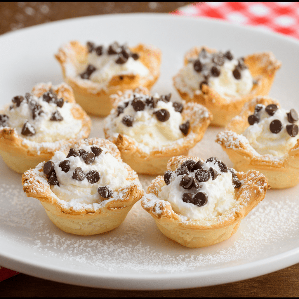 Mini Cannoli Cups are a delightful and elegant reimagining of the classic Italian pastry, transforming its iconic flavors into a charming, bite-sized dessert that is perfect for parties, gatherings, or a sophisticated treat. This recipe masterfully simplifies the traditional cannoli-making process by using pre-made pie crust as a vessel, creating a flaky, buttery cup that bakes into a golden, crisp shell. The filling is a beautifully authentic blend of whole-milk ricotta cheese, gently sweetened and brightened with a hint of citrus zest and vanilla, resulting in a creamy, lush texture that is far superior to any pre-made filling. The final dusting of powdered sugar and sprinkle of miniature chocolate chips or chopped pistachios provide the perfect traditional finish, making each cup a miniature masterpiece that captures the essence of a cannoli in a single, delightful bite.