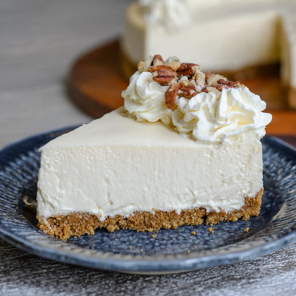 This No-Bake Keto Cheesecake is a magnificent triumph of low-carb dessert alchemy, delivering all the rich, creamy indulgence of a classic New York-style cheesecake without a single gram of sugar or traditional flour. The recipe masterfully constructs a decadent dessert in layers, beginning with an innovative crust of crushed keto-friendly cookies and roasted pecans bound with butter, which bakes in the freezer to a firm, crumbly, and deeply nutty base. The true showpiece is the filling—a cloud-like, impossibly smooth marriage of whipped heavy cream and full-fat cream cheese, sweetened with confectioners’ monk fruit and brightened with a touch of lemon juice and vanilla. By whipping the cream separately to stiff peaks before gently folding it into the sweetened cream cheese mixture, the recipe ensures an ethereally light, mousse-like texture that sets firm yet melts luxuriously on the tongue.