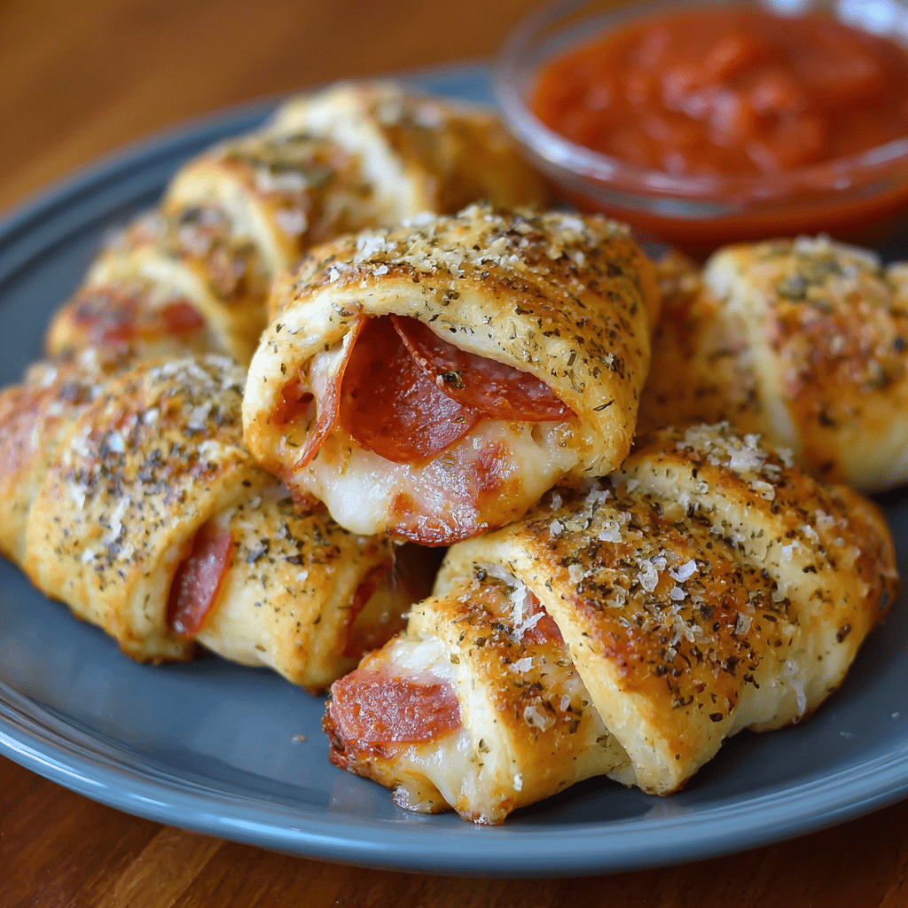 Pizza Stuffed Crescent Rolls are the ultimate fun, fast, and flavorful fusion food, brilliantly combining the gooey, cheesy satisfaction of pizza with the buttery, flaky convenience of crescent roll dough. This recipe is a masterstroke of simplicity, transforming a tube of refrigerated dough and a handful of classic pizza toppings into irresistible, handheld snacks that are perfect for any occasion. The method is wonderfully straightforward: each triangle of dough is layered with slices of pepperoni and a half-piece of mozzarella cheese stick before being rolled into its signature crescent shape. As they bake, the dough puffs into golden, delicate layers while the cheese inside melts into a stretchy, savory core. A brush of egg wash gives them a professional, glossy finish, and a sprinkle of Italian seasoning and grated Parmesan before baking infuses every bite with authentic pizza-parlor aroma and flavor.