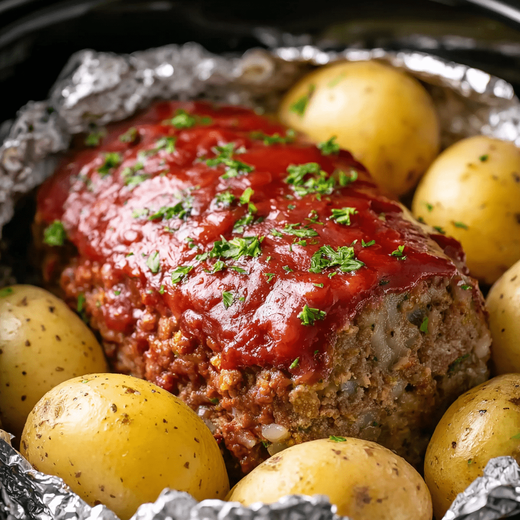 Slow Cooker Meatloaf and Potatoes is the ultimate comfort food meal, reimagined for the modern home cook. This recipe masterfully transforms the classic, oven-baked favorite into an incredibly tender and flavorful one-pot wonder that practically cooks itself. The slow cooker’s gentle, consistent heat works magic on the meatloaf, steaming it to a succulent juiciness that is nearly impossible to achieve in a dry oven, while simultaneously roasting the baby potatoes to a buttery, garlic-infused perfection in their own compartment. By forming a foil “boat” for the meatloaf, you ensure it holds its shape beautifully and allows any rendered fat to drain away, resulting in a perfectly textured loaf that is both hearty and satisfying. This method fills your home with an inviting, savory aroma for hours, building anticipation for a meal that is the very definition of homestyle comfort.