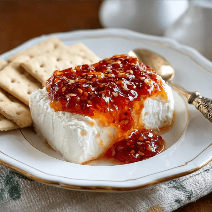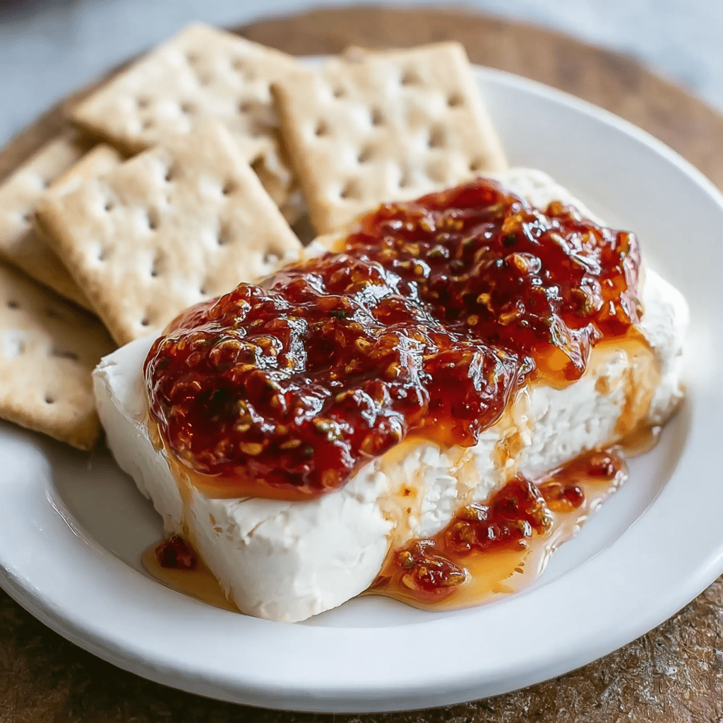 The brilliance of this dip lies in its stunning presentation and incredible versatility. It’s a no-cook, no-bake wonder that can be assembled in under five minutes on a pretty serving plate, yet it looks and tastes like you fussed for hours. The warm, jewel-toned jelly draped over the snowy white cream cheese is a showstopper on any holiday table, game-day spread, or summer picnic. For a variation, top with crumbled cooked bacon, chopped pecans, or sliced green onions for added texture and flavor. Whether served at a casual gathering or a fancy cocktail party, this Pepper Jelly Dip is guaranteed to be the first thing to disappear from the buffet table—proof that the best recipes are often the simplest.